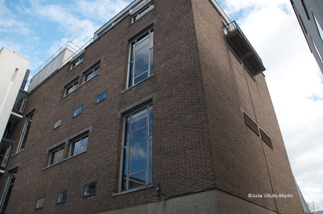 Harvey Court gives an impression of hostility to its own surroundings. As Peter Blundell Jones notes, “modernist buildings were expected to stand in contrast with surroundings,” and Harvey Court did just that, with a sort of contempt for the street, as if it had nothing to do with it. That, of course, is an underlying planning problem for Cambridge: its old institutions turned away from the street, so why shouldn’t the new?