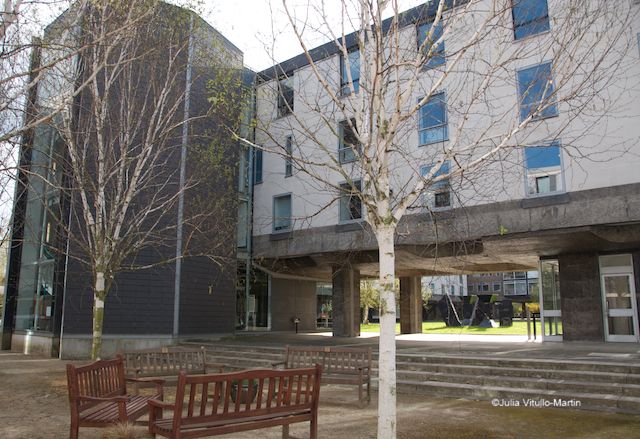 The Cambridge 2000 architectural web site calls it “one of the most reviled buildings in the university, although far prettier than most of the buildings on the Sidgwick Site. One problem is that because of the (largely south-facing) glass it is boiling in summer and freezing in winter. There was some story that the building had to be rotated ninety degrees from what the architect had originally specified in order to fit in the allocated space, but that is not an acceptable excuse. The building also suffered from a leaking roof for many years.”