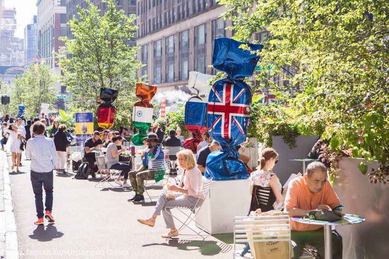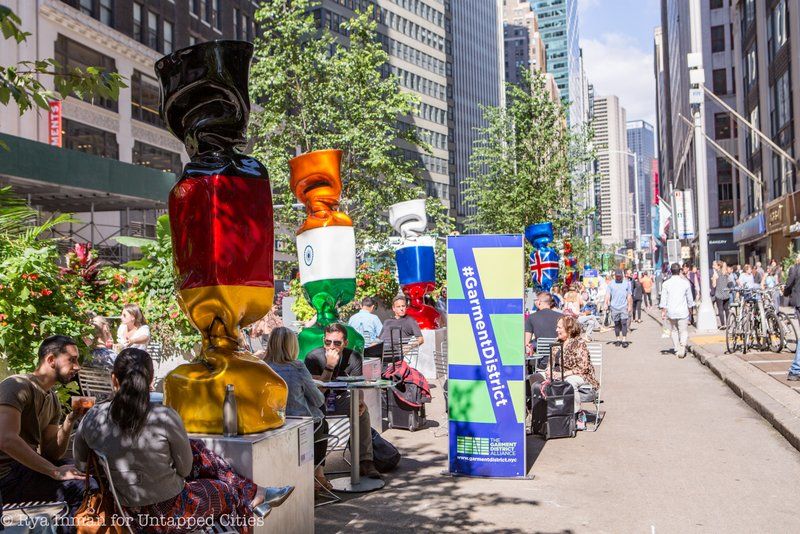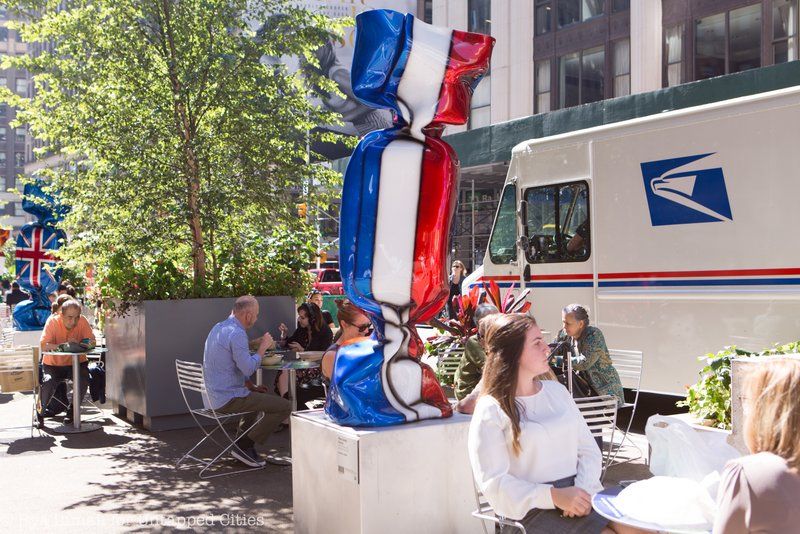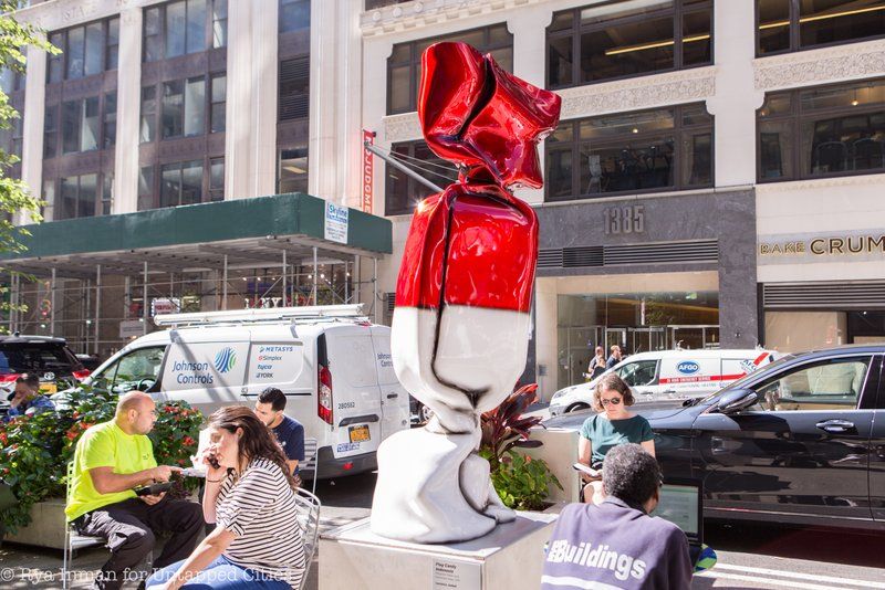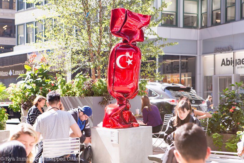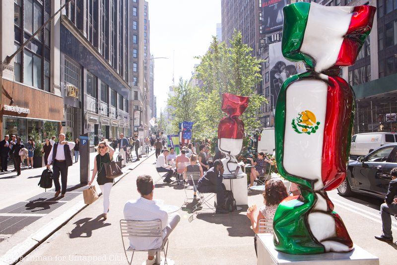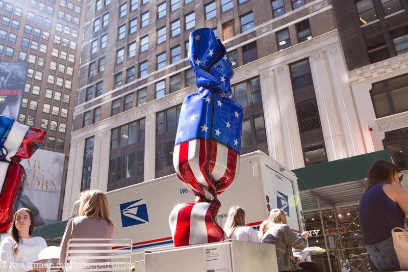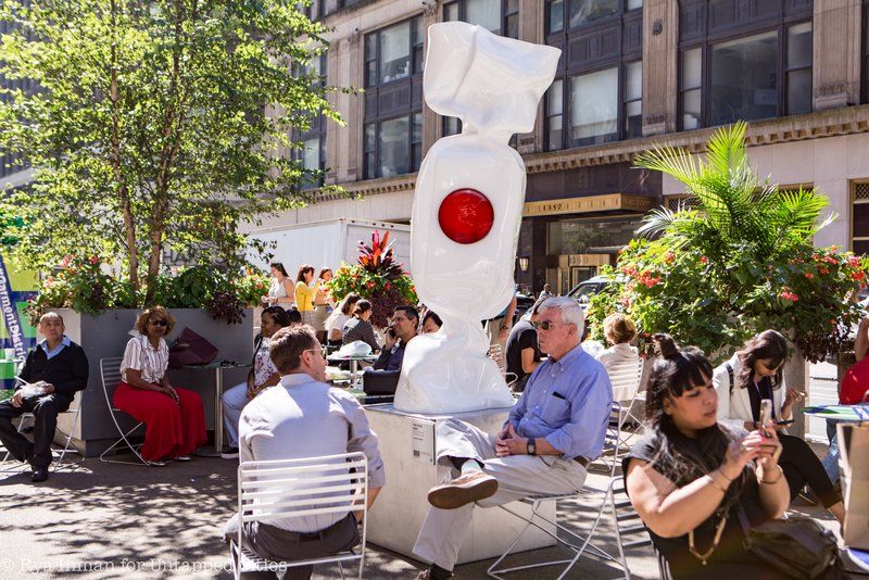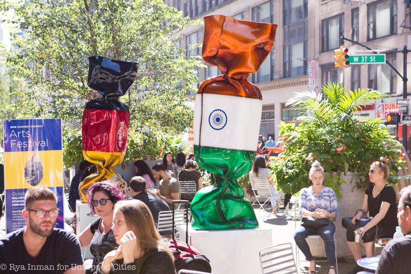 Candy Nation has arrived on the Garment District malls on Broadway between 36th and 39th Street, as part of an installation by the Garment District Alliance and the Arterventions program from the NYC Department of Transportation.