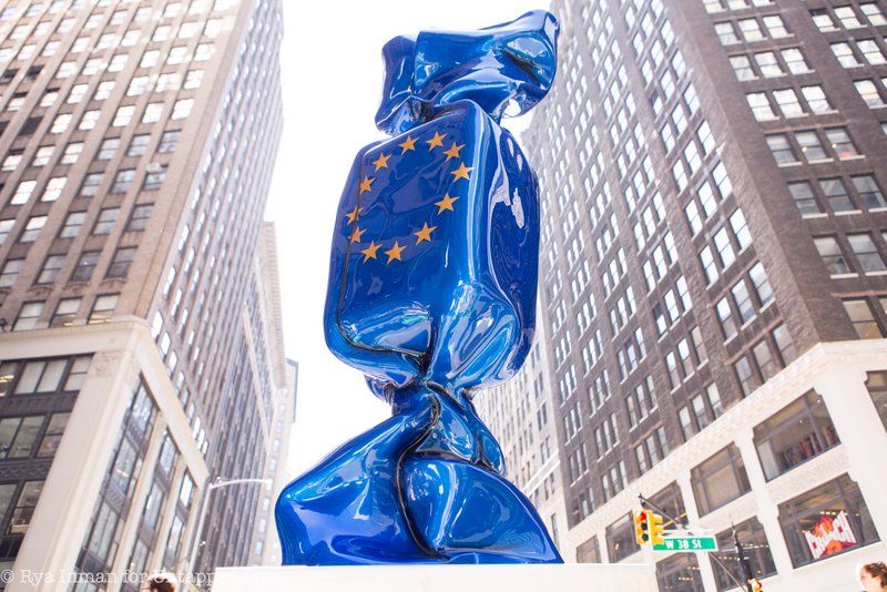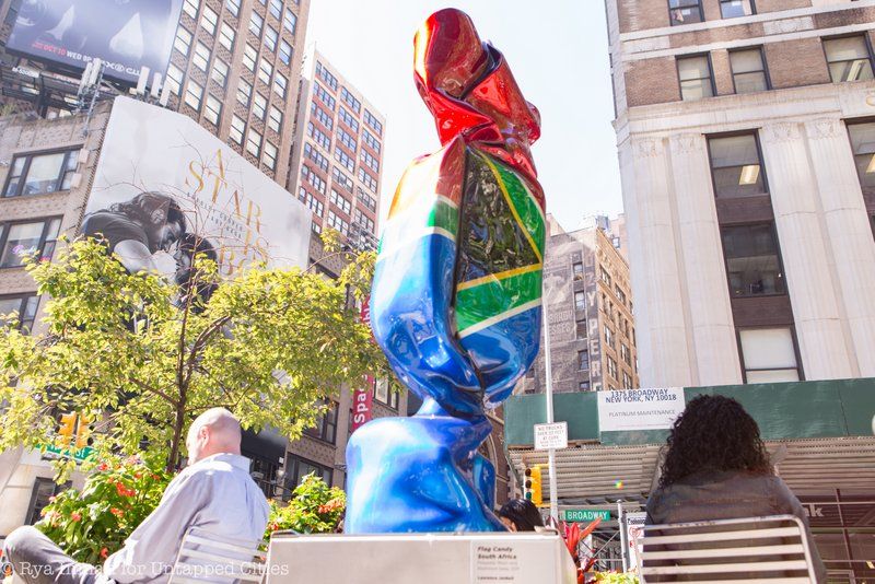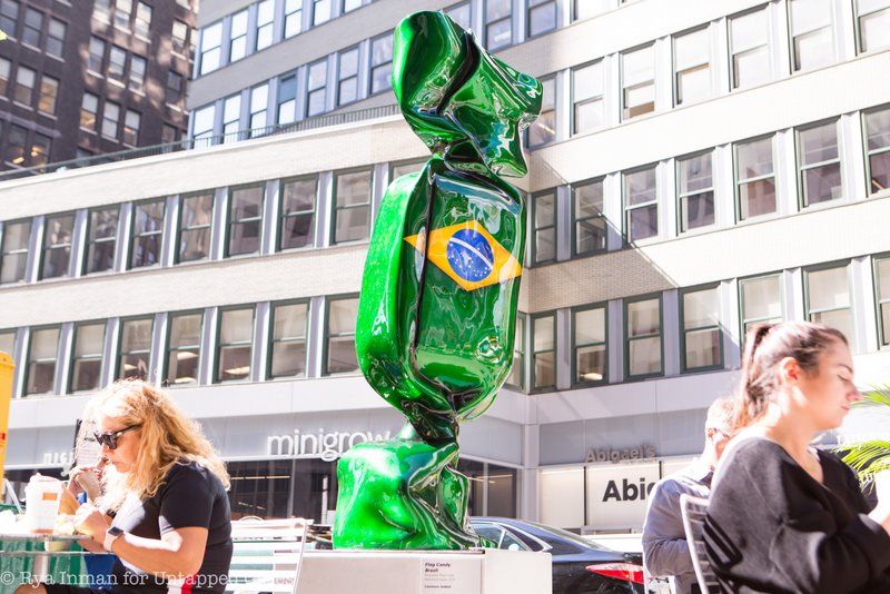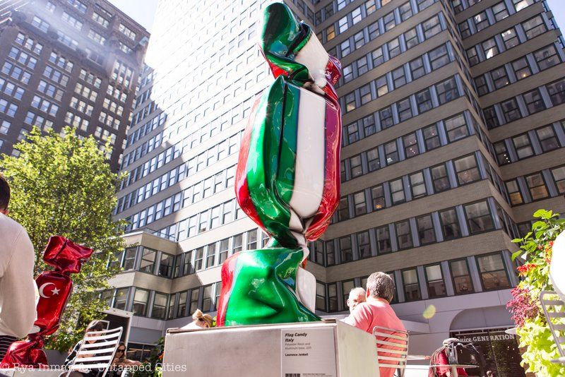 French sculptor Laurence Jenkell‘s Candy Nation, a series of oversized candies with the flags of different countries, was first created for the G20 Summit in Cannes, France in 2011. Now, to celebrate New York City as a world city and global capital,