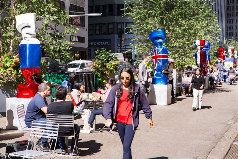 “No city in the world matches New York City’s power as an international magnet for culture, creativity, design and the arts,” said Barbara A. Blair, president of the Garment District Alliance at the press opening “Through her remarkable exhibit, Laurence Jenkell leverages both simple and universal imagery to remind New Yorkers of our global character, right at a moment when such reminders are so timely and valuable.”