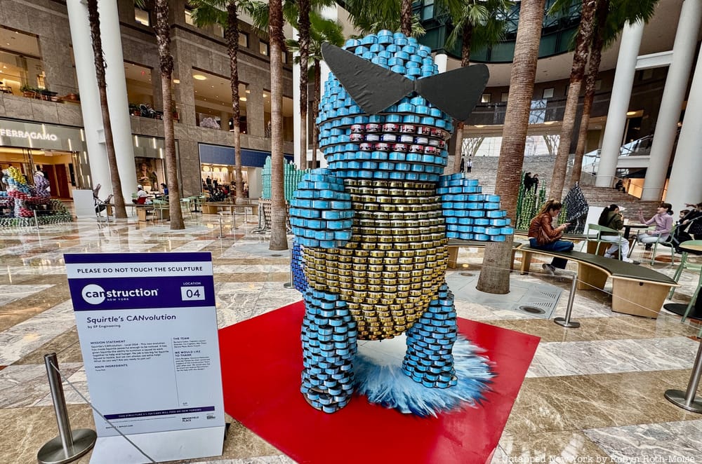 The mission of Canstruction® is to raise funds and donations for and awareness of hunger relief programs. Over 2 million pounds of food have been donated to local food banks since Canstruction® began in 1993. Every year, the cans that make up the sculptures are given to City Harvest to help feed those in need. Keeping with the theme of fighting hunger, each sculpture has a playful name. Those pictured above are titled: We CAN Do It! by Buro Happold, Ding-Dong, Hunger’s Dead! by Gensler, Squirtle’s CANvolution by EP Engineering, and Little Shop of Hunger by Simpson Gumpertz & Heger.