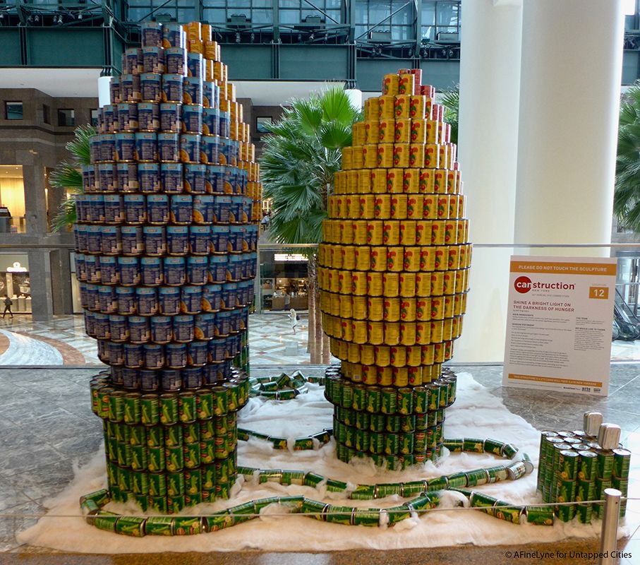 The exhibit is free and open to the public, however, visitors are encouraged to participate by bringing a high-quality, non-perishable can of food to be donated along with the cans used in the competition. Winners are chosen by a team of judges, but be sure to cast your vote for the People’s Choice Award, and check out the related events. We arrived shortly after the teams finished. Below are a few of this year’s installations: