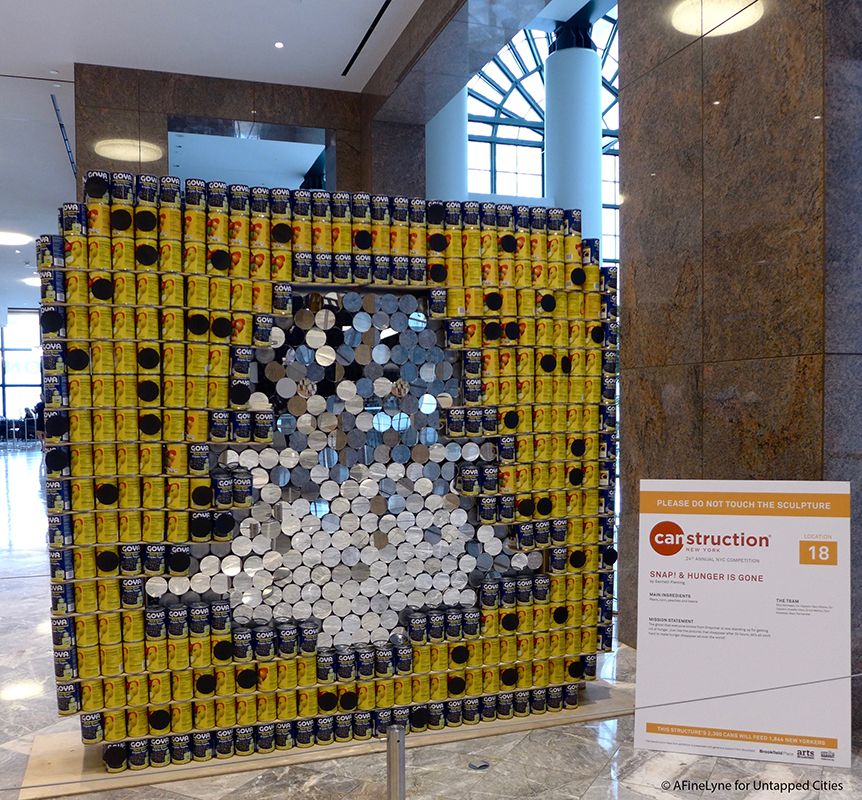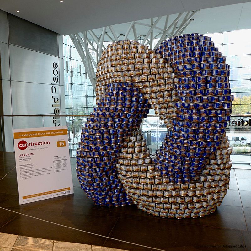 City Harvest, which was formed in 1982, will collect 55 million pounds of excess food to help feed nearly 1.4 million New Yorkers this year. Canstruction is presented by Arts Brookfield, and is located at Brookfield Place, 230 Vesey Street. The installations will be on view until November 16, 2016. Don’t forget to bring a donation of a non-perishable can of food, and don’t forget to vote for the People’s Choice Award.