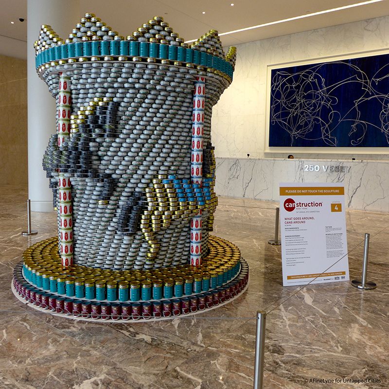 Canstruction, the annual food charity and design competition, returned to Brookfield Place. The 100,000 unopened cans of food, used to create life-size sculptures, will be donated to City Harvest for distribution to about 500 soup kitchens and food pantries across New York City. Twenty-six teams of the city’s top architecture and engineering design firms and the students they mentor spend months planning and designing their entries, and all of them arrive at Brookfield Place for an overnight installation of the entire exhibit.