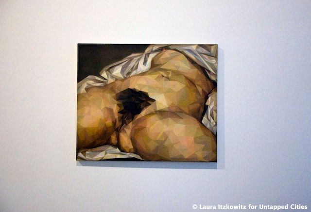 However, the most direct reference to a great artist who challenged the societal discourse on sexuality comes from Sherrie Levine and Anna Ostoya, both of whom re-present Courbet’s L’Origine du Monde in a new way. Levine framed a series of postcards from the Musée D’Orsay and lined them up in perfectly geometrical rows so the image is repeated eighteen times. Ostoya, on the other hand, sought to distort Courbet’s painting by re-creating it in a style that seems to be a cross between Cubism and the type of pixellation you see on computer graphics. The planes of flesh and fabric you see in Courbet’s original have become rough and jagged due to the superimposition of geometric shapes. The effect is almost like looking at L’Origine du Monde through a kaleidoscope. Levine and Ostoya remind us what an incredible influence Courbet had on the history of art in the Western world. Before photography made it easy to frame a subject, Courbet composed a painting which sought to valorize that which was considered dirty.