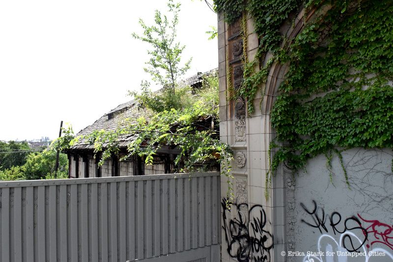 The station is still quite the beauty despite being marked up with graffiti and sporting the remnants of the crumbling railroad track. Visible still is the design of the arched doorways and windows, the metal and dark-trim detailing decorating the peak, and a caduceus, which is the Greek and Roman mythological symbol for safe travels and was the emblem of the NYW&B.