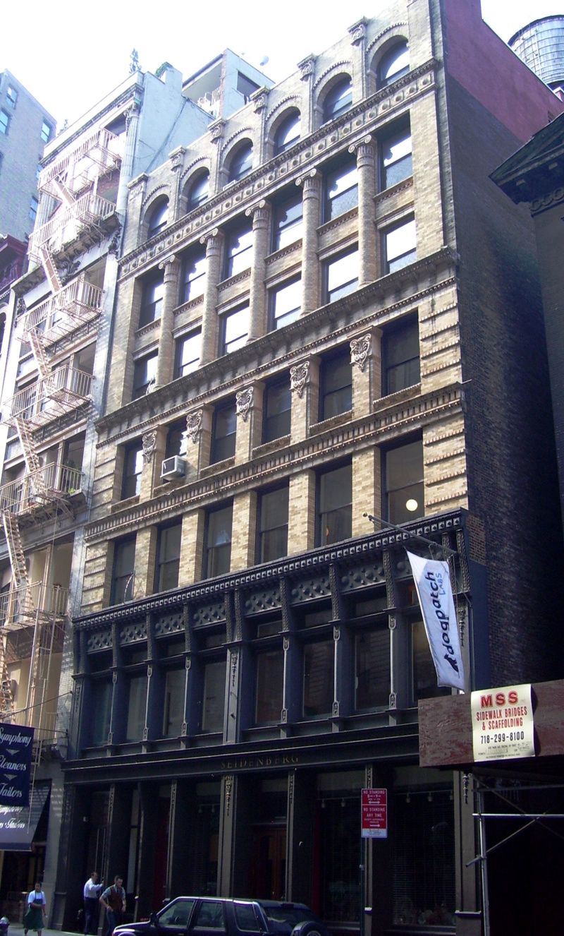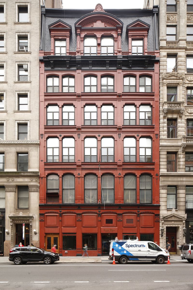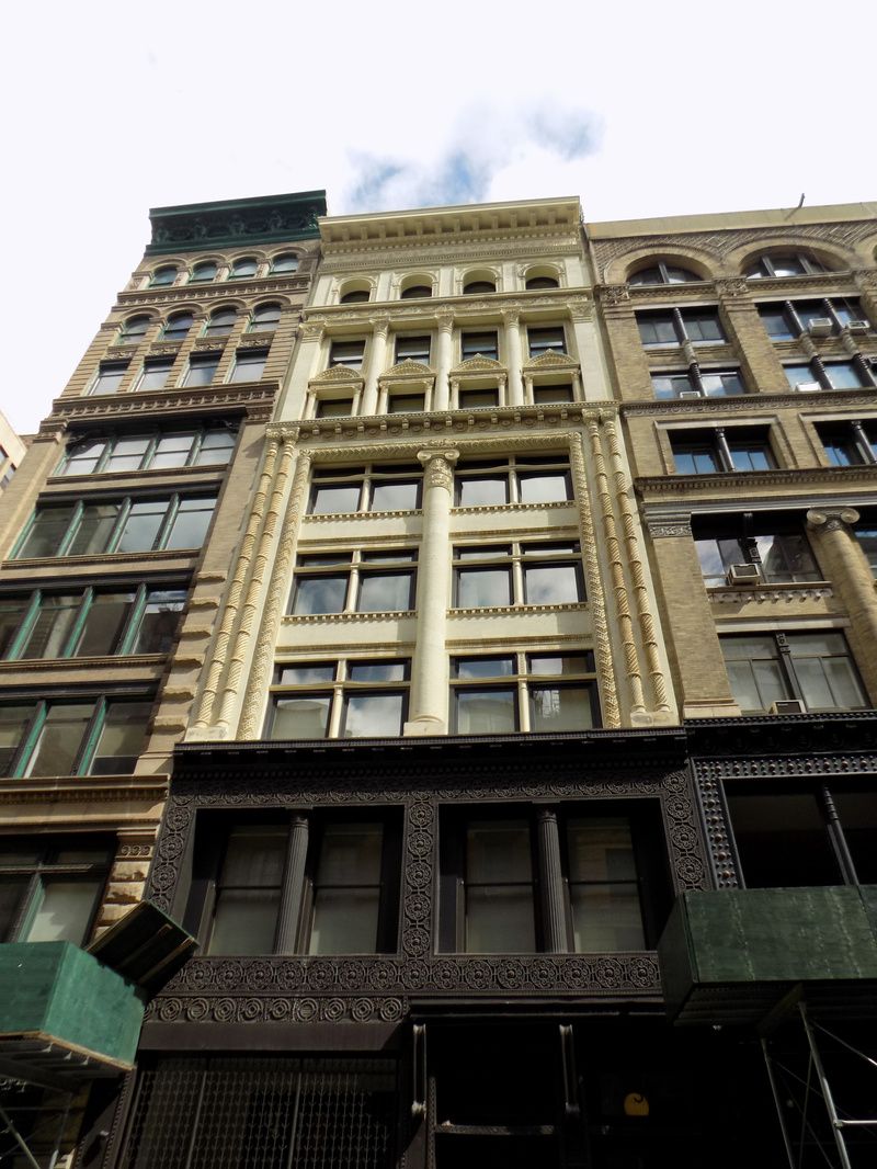 The cast iron for the building came from the foundry of J. B. & W. W. Cornell Ironworks. The company also produced manhole and coal hole covers, which you can still spot around New York City. The Cornell Company still exists today as a rolling door manufacturer. In 1971, a fire destroyed the interior of the building, but the sturdy cast-iron facade was saved. The original mansard roof was replaced and the building was converted into apartments.