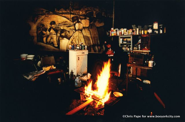 Eventually Pape was joined in the tunnel by scores of homeless people, who created shantytowns below his paintings of Goya’s The Third of May, the Venus de Milo, Michelangelo’s David, and Salvador Dali’s The Persistence of Memory, among many others. These huge paintings were dramatically lit from above, as if in a gallery, by shafts of light streaming through the grates in the sidewalks of Riverside Park.