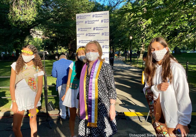 Hillary Clinton at the press opening with Girls Scouts from New York City