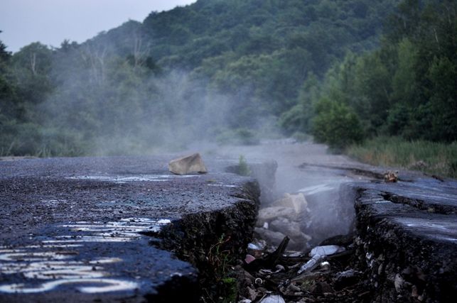 It wasn’t just the town that was affected, however. An entire stretch of Pennsylvania’s Route 61 had to be rerouted around the fire, which was quickly heating and cracking the pavement of the road directly above the mines. The affected stretch of 61 was abandoned as well, left to simmer and decay over the eternal flames.