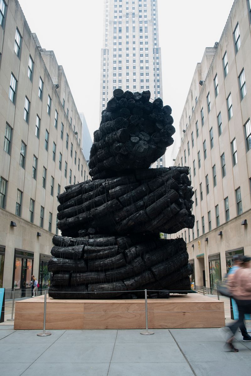 Now on view at Rockefeller Center is the first-ever celebration of Korean culture at the Art Deco site. Towering over the Channel Gardens visitors will see Issu du feu by artist Lee Bae. Bae’s work marks the first time a Korean artist has presented in this space. The piece is just one of 70 different works of art that make up the exhibit Origin, Emergence, Return. This collection highlights three different Korean artists – Park Seo-Bo, Lee Bae, and Jin Meyerson – from three different generations.