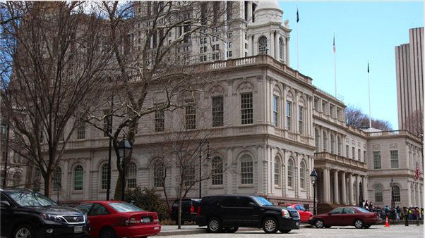 City Hall, before and after the Manhattan Municipal Building opened behind it in 1914 on 1 Centre Street to accommodate increased governmental space demands.
