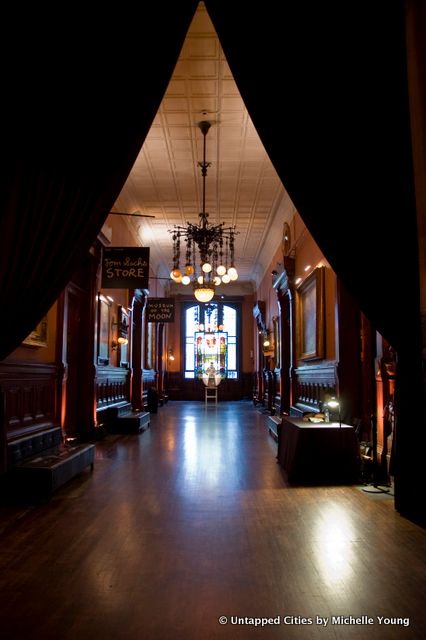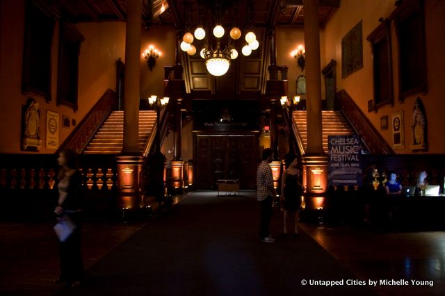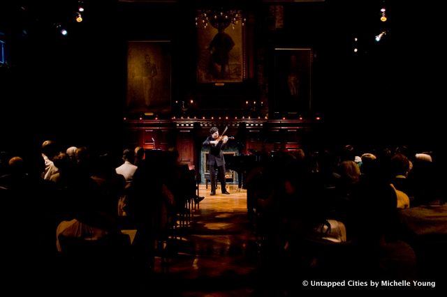 The hallowed spaces of the Park Avenue Armory at last night’s gala concert and preview were also perfect fit for the festival. It’s a building comfortable with its position between past and present: the high ceilings and wooden neoclassical details of its period rooms are counterbalanced by a patina of age that enhances the experience of being there. I felt a tinge of regret that restoration would cover over the exposed plaster–there’s something about a building that admits its age.