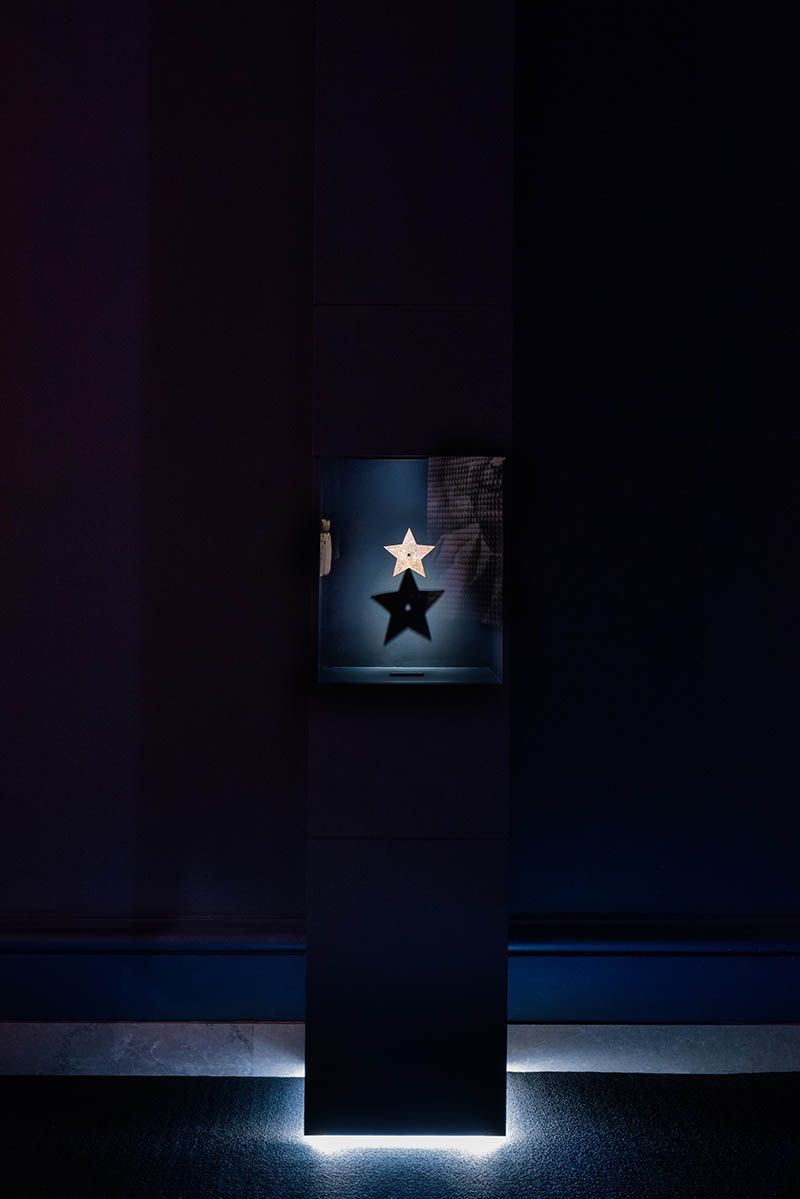 The final section of the exhibition belongs to the stars, which is like entering into a dotted, blue starry night. In addition, there is a glass display of clips featuring movie stars that worked with Dior, along with television screens playing old film excerpts while their dresses are displayed.. It’s as if strolling through the end of a glitzy night. At the end of the exhibition, the journey ends with a poignant portrait mosaic of the great designer composed of intricate small graphic photos of Marilyn Monroe’s face and a heartwarming quote by Dior that reads, “My dresses make a princess of every woman.” Ultimately, after experiencing this spectacular exhibition, one can most definitely say, yes, yes, they do.