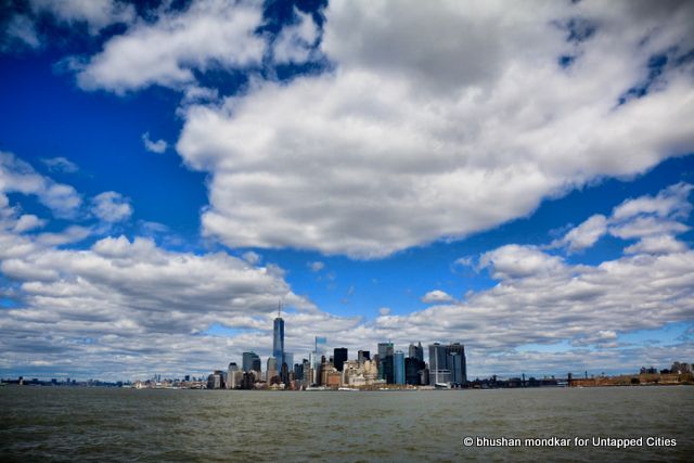 Sailing along the ‘BIG U,’ a multitude of glassy, reflective buildings punctuate the skyline towering above the Gothic skyscrapers that once raced for supremacy in the heaven-climbing contest. Our eyes wandered from the pyramidal roof of 40 Wall Street aka the “Crown jewel of Wall Street” to the Gothic spire of 70 Pine street and the gorgeously ornamented, Neo Gothic Architecture of the Woolworth building. At times, bulky rectanguloids disrupted this magisterial skyline, but it’s the new World Trade Center complex that dominates the skyline. Towering up to 1776 ft, One WTC and its modest counterpart, Four WTC, reflect some dramatic views of lower Manhattan and the clouds they cut through.