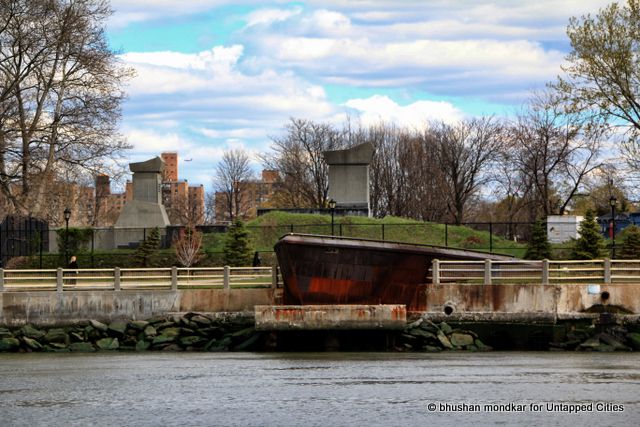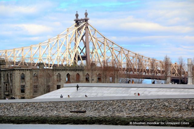 On the opposite banks, the East River caressed the foundations of Four Freedoms Park, adorning the southern tip of Roosevelt Island. Decrepit ruins of the 19th century small pox hospital (the only ruins in NYC with Landmark status) formed a picturesque backdrop to the monumental granite blocks.