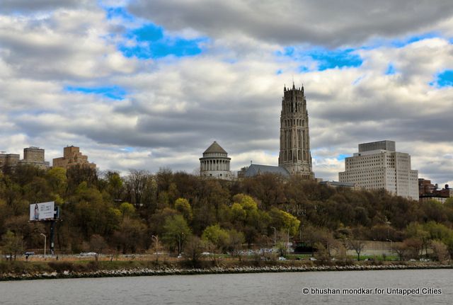 Passing under the grand George Washington Bridge and the Little Red Lighthouse at its feet, the banks of Hudson River get speckled with gems such as Riverside Church, modeled after the 13th-century Gothic cathedral in Chartres, France to Grant’s Tomb and the Cloisters.