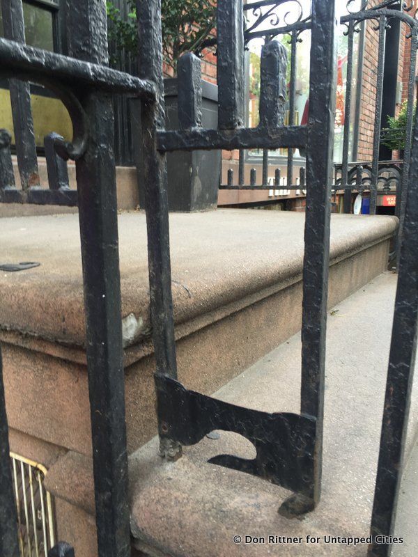 Detached from the railing and anchored right into the stoop, this single blade cut iron scraper was the basic get-the-job-done style and is located at 152 Waverly Place: