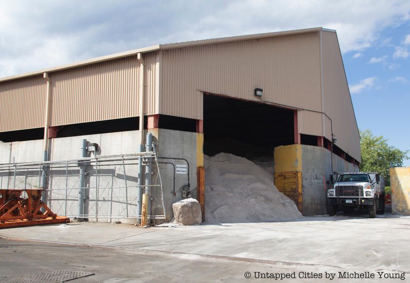Flickr user roccocelli has produced a perfectly balanced image of the salt shed there, which is located on Kay Street, next to Pier K. It’s the major structure on the DSNY occupied site, which was formerly home to the Nassau Works Manufactured Gas Plant.