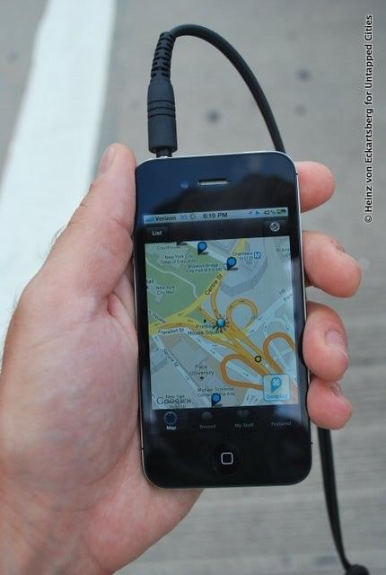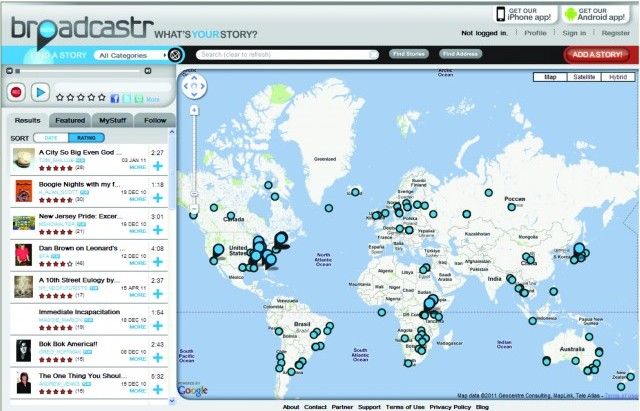 There are two primary ways people can engage the software while out and about: 1) Let’s say you’re walking around the neighborhood you grew up in and want to share a story about an experience you’ve had there. Using your iPhone or Android, you can record your story and geotag it to the location it took place. 2) If you are walking through a place that you want to know more about, with the Broadcastr app turned on, a prompt will tell you when you are close to a story. You can then choose to listen to what others have said about that place.