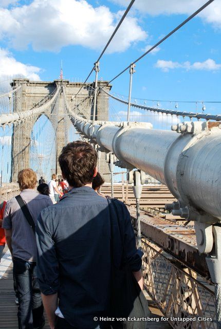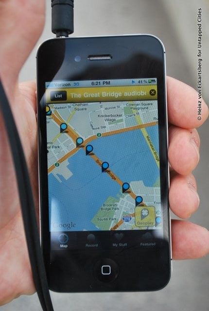 I believe the saying goes “If these walls could talk.” Well what if they could? What if stories and memories echoed long after we leave a place? To avoid delving into a philosophical nightmare, I am talking about the audio narratives put out by Broadcastr, a company that labels itself as “a Social Media platform for location-based stories,” and it really is. But it could also be described as a platform for location-based people, whose curiousity is satisfied by taking a walk and learning something new. The goal of Broadcastr is to compile a global archive of narratives. As time passes these voices become relics describing a place long since gone. Its co-founders, Andy Hunter and Scott Lindenbaum see it as nothing short of a revolutionary concept, reviving the lost art of storytelling. Untapped previously covered Broadcastr’s partnership with the 9/11 memorial and last week I was able to check out one of their audio narratives across the Brooklyn Bridge with founder Andy Hunter and two of his staffers, Matthew and Sara.