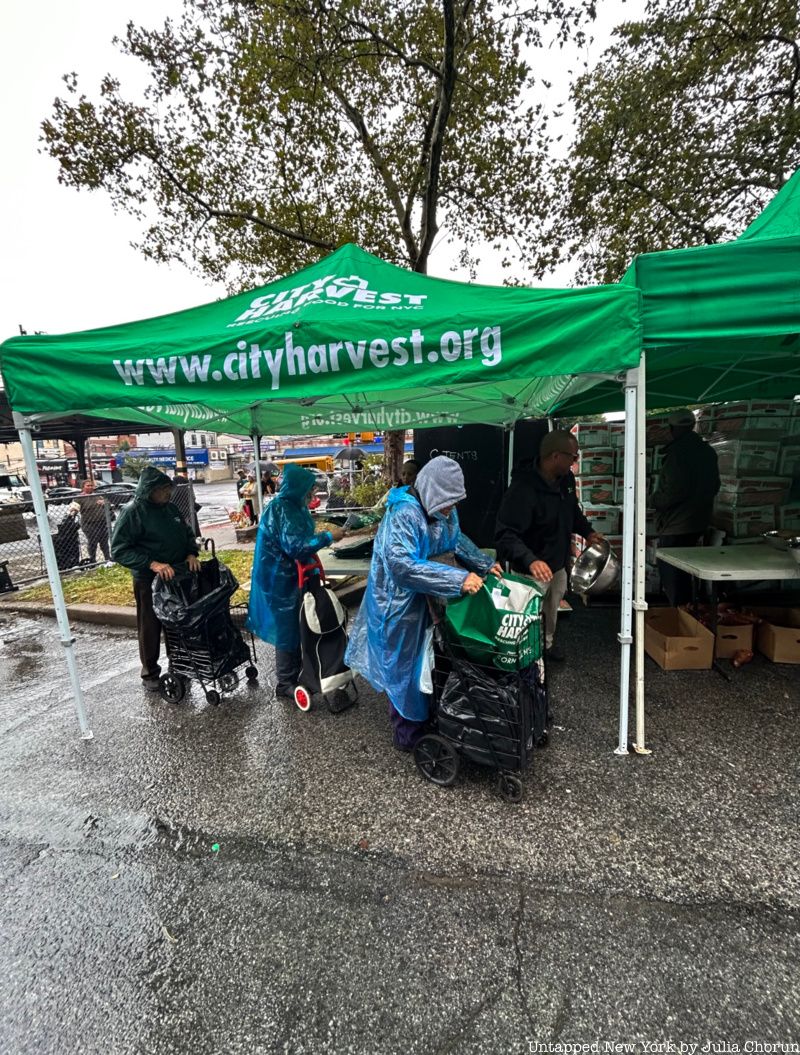The line forms as early as 8:30 a.m. Bronx families push their personal shopping trolleys to the corner of Westchester and Trinity Ave and stand next to Mt. St Mary’s Park, rain or shine. Anticipation builds among the crowd of residents who, by now, know the City Harvest tents and what they mean for their families. Trucks filled with free fresh produce and dry goods will save those in line an expensive trip to the grocery store. The trucks are unloaded for the next hour until finally, the hands of a green-shirted volunteer fill the first cart in line with a plethora of potatoes.