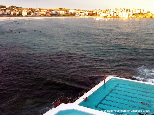 As the 389 approaches Bondi Beach the energy begins to escalate. Beautiful sun-kissed bodies abound, surfboards in tow. Lively cafes, restaurant and bars make Bondi a bustling neighborhood. There is no other place you can be but Australia. The bus pulls to the stop at the northern end of the beach and 1km of perfection is presented (and I am not really even a beach lover).