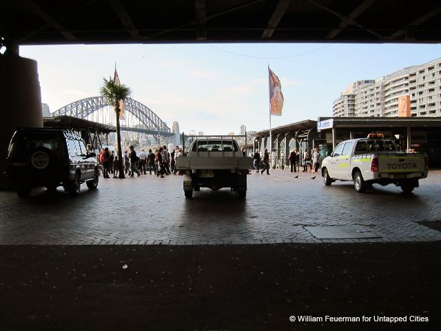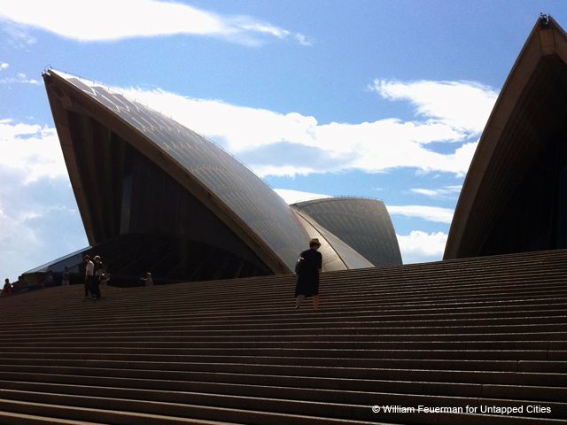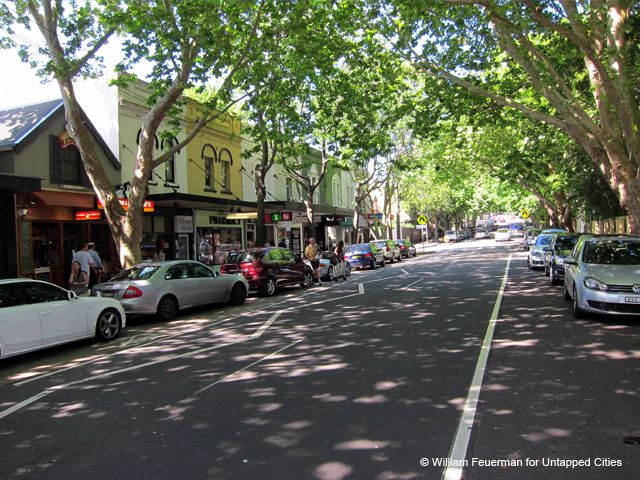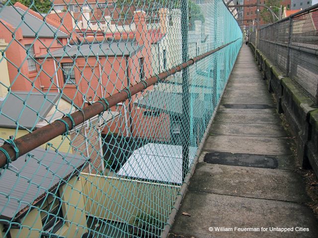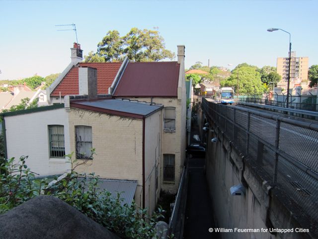As the 389 progresses into Paddington, it crosses the Cutler Footway, a bridge that hovers above a dense residential neighborhood. Constructed in the 40’s as a tram passageway (a transportation system that has mostly disappeared from the Sydney street), the bridge is now paved for pedestrian and vehicular use, allowing visual access, a “Rear Window” effect, into the back yards and windows of the residences below. Definitely a stop for the architect/urban enthusiast, as you drift above the city.