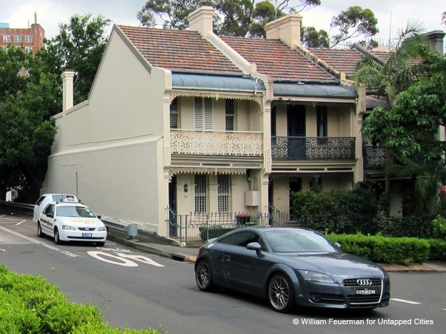 The bus awkwardly moves through the meandering and extremely narrow backstreets of Paddington passing the colorful cast iron terrace houses (one of Sydney’s most common urban dwelling) that define Paddington’s charming character.