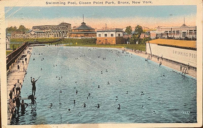 Clason Point wasn’t always the unfamiliar enclave that it is, in large part, today. From the late 1880s to around 1935, the neighborhood was a major tourist attraction and home to a massive amusement district, complete with arcades, dancehalls, waterfront resorts, and a massive outdoor saltwater swimming pool known as “The Inkwell” due to its dirty, unfiltered water that came straight from the East River. There were ferryboat and steamer excursions from Clason Point to downtown Manhattan and a local service to College Point, Queens. Regarded as the “Coney Island of the Bronx,” Clason Point was always buzzing with working and middle-class New Yorkers who would flock there during warm weather.