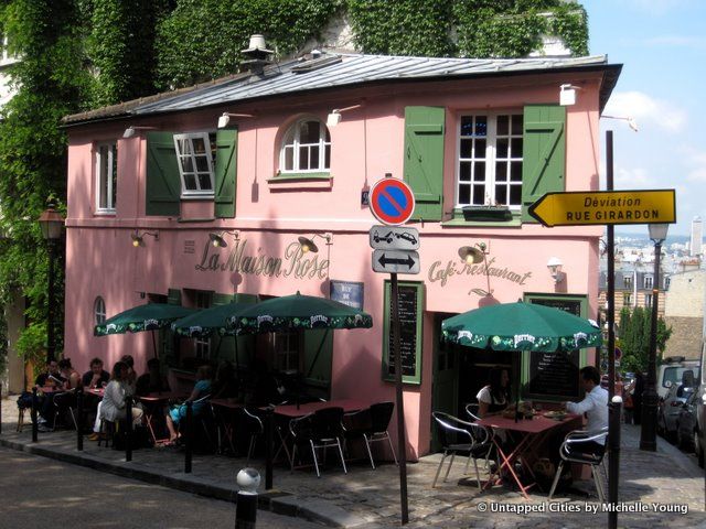 By the 1920s, the land had became fallow, used as a playground and frequented by the homeless. The land was reportedly saved by artists, who pushed to have the land converted to vineyards instead of sold to real estate developers. Two important buildings border the vineyard: the famous Le Cabaret du Lapin-Agile was frequented by artists such as Renoir and Picasso, and the museum Le Vieux Montmartre at 12, rue Cortot was once a comedy club for the troupe of Moliére, also popular with Renoir and other artists. For a quick bite or an afternoon drink, stop by Le Maison Rose, a cafe converted from an old village store oft-painted by the Impressionists.