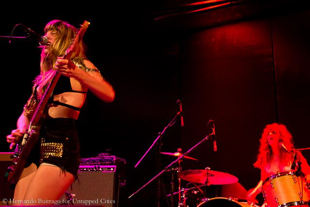 Los Angeles duo, Deap Vally played an energetic blues rock set at a tightly packed Bowery Ballroom on Thursday night. Despite portraying a devil may care attitude, Lindsey Troy and Julie Edwards are great at following a very important rule for rock duos, that is, be loud and be fearless. They pummeled the room with an eighteen-wheeler guitar sound and tasteful drumming.