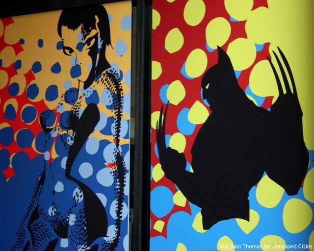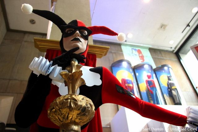 Project coordinator Steven Brown told us that the exhibition took about four to six months to come to fruition, and the students’ hard work can be easily seen in this compact yet appealing show. It’s interesting to note that they haven’t restricted the exhibition to the FIT interiors—besides checking out a window display featuring Catwoman a.k.a Selina Kyle, passersby on the street are also treated to the impressive silhouettes and portraits of the characters on the walls and columns of the building.