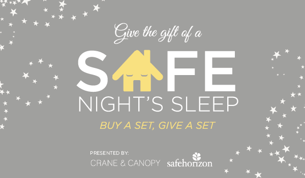 In New York City, Crane & Canopy and Safe Horizon will be hosting a volunteer day on February 26th to launch their “Give the gift of a Safe Night’s Sleep” campaign. From February 26 to May 30, Crane & Canopy will donate one complete bedding set to Safe Horizon for every set purchased. These donated sets will go to victims of crime and abuse who are transitioning from Safe Horizon’s shelters to homes of their own, where they can look forward to futures free from violence and fear and begin to rebuild their lives.