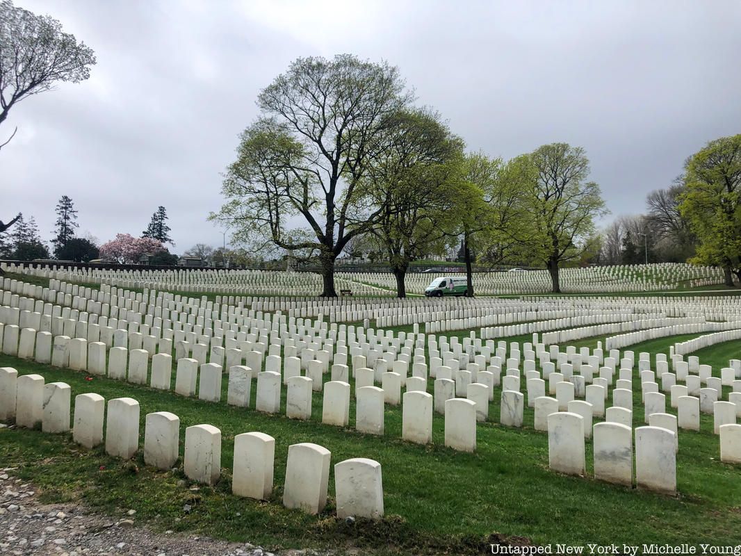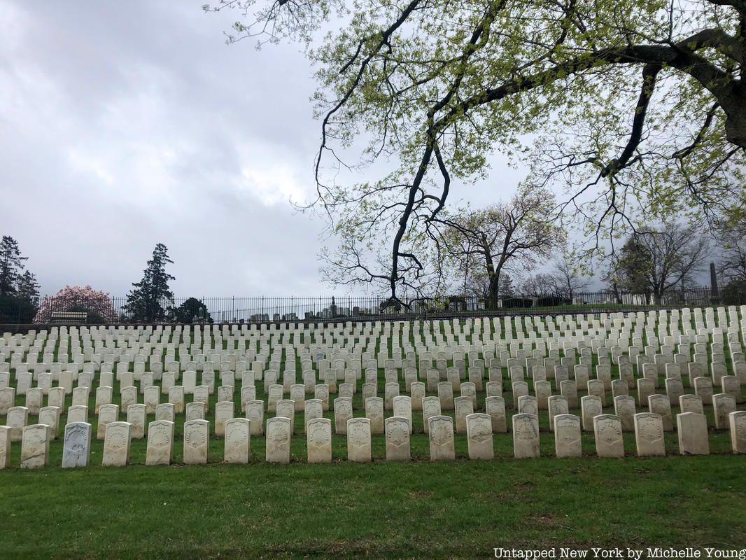 Cypress Hills Cemetery, a non-sectarian burial ground that stretches into both Queens and Brooklyn, is not only the final resting spot of famous New Yorkers like Jackie Robinson and Mae West, but it is also home to the remains of soldiers who fought in conflicts from the American Revolution through to Operation Iraqi Freedom. Eighteen acres comprised of three separate areas on the Brooklyn side of the private cemetery are designated as Cypress Hills National Cemetery, a historic military cemetery owned by the federal government. This cemetery is the only military cemetery in New York City, and it predates Arlington National Cemetery by two years. In the National Cemetery, you will find neat rows of white headstones denoting where brave Veterans of the past four centuries have been laid to rest.