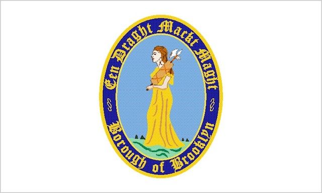 Brooklyn is unique in that it was originally its own city before joining the boroughs. The Brooklyn flag is white and often has a thin, yellow border. At its center is a robed woman dressed in white on an oval, blue background. The phrase “Unity makes strength” in Dutch and “Borough of Brooklyn” completed the seal, written around the center emblem to complete the Kings County flag.