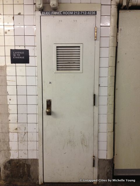 This particular Electric Panel Room door at the 3rd Avenue L train stop is notable mostly because it’s so narrow! According to the MTA, Electronic Equipment Maintainers “work on electronic communications equipment, closed circuit television and control systems and equipment.”