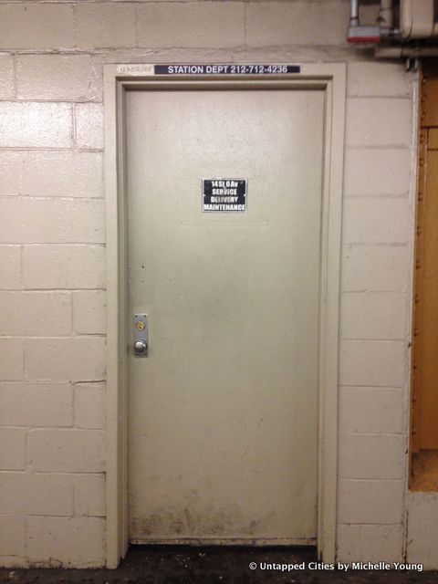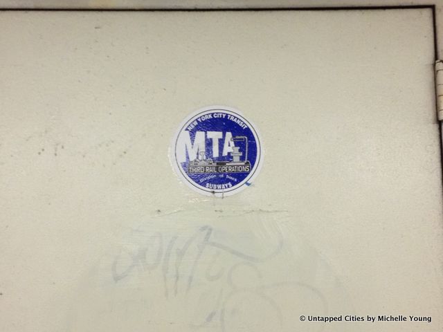 The particular Signal Room door at 14th Street is notable mostly because it’s rather wide. According to the MTA, Signal Maintainers “work on railroad signal apparatus, including signals, automatic train stops, electronic control systems, track circuit equipment, compressors, interlocking machines, related apparatus and some asbestos containing material.”