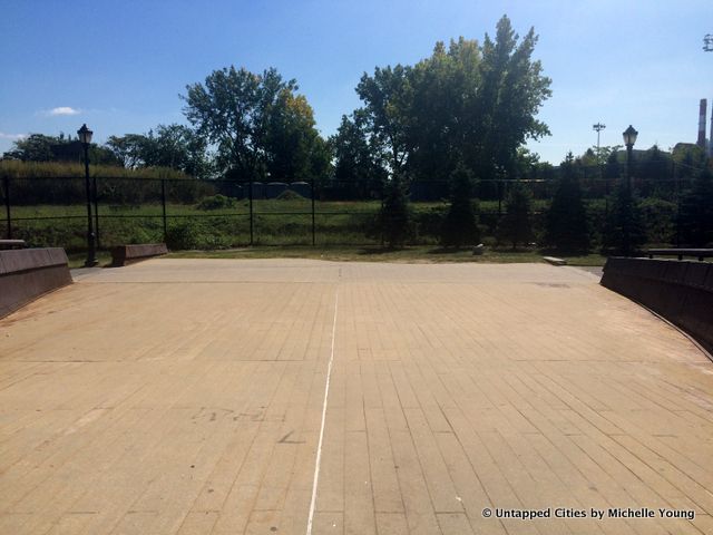 Turns out, it’s the latter but with some connection to the maritime architecture of the spot. There used to be a boat landing here, and in 1997 a performance stage and observation platform was built in the shape of a boat prow. According to The New York Times there are only two “nautical embellishments,”: “Two small slots near the tip–presumably for imaginary anchor chains…though a few heavy mooring posts have been placed nearby.”