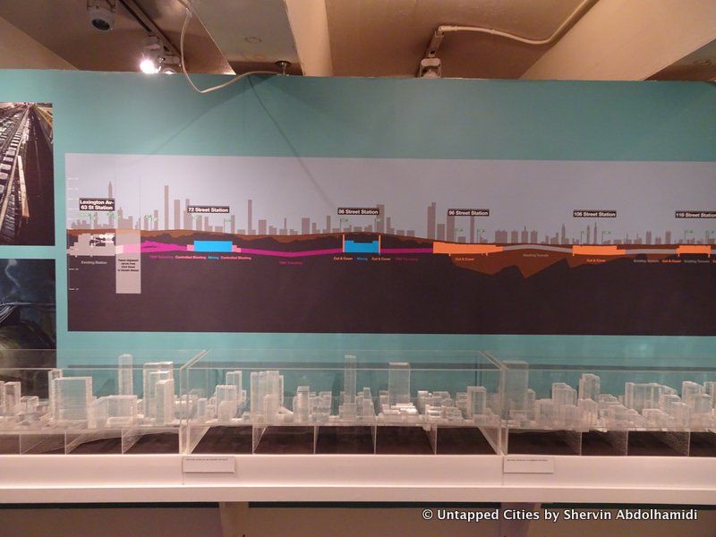 In the second half of the exhibit, a series of images and model illustrate the incredible labor, art, engineering and technology that was devoted to the Second Avenue line. A series of remarkable images capture the sheer magnitude of the project. A miniature model of the Second Avenue line illustrates which parts of the excavation were done by Tunnel Boring Machines (TBM), and which parts were done by cut-and-cover, or groundfreezing–the last of which is a technique over hundred years old. “Its a nice mesh of tried and true methods, and new technologies,” Shapiro says.