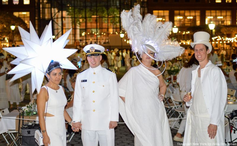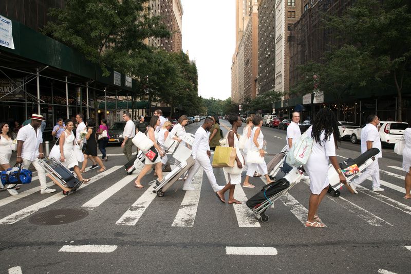 New Yorkers traveling to a Dîner en Blanc event.