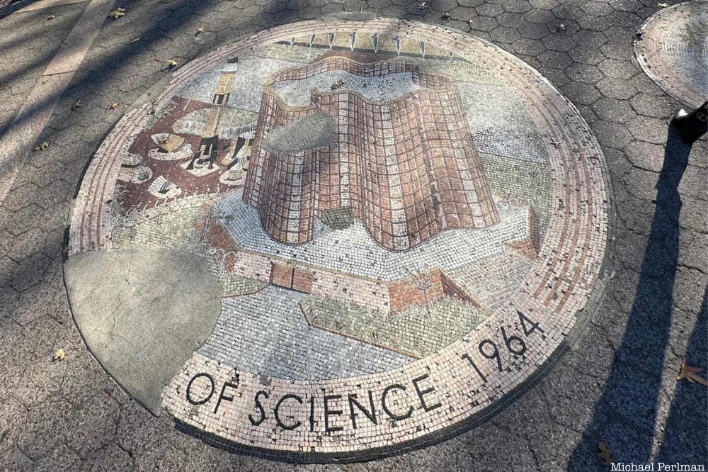 One of the stops on our Remnants of the World's Fairs Tour will soon disappear. Since 1997, a series of mosaic medallions commemorating the 1939-40 and 1964-65 World's Fairs have decorated the ground at David Dinkins Circle. Now, the tiled works of art—which have been severely damaged—may soon be another lost relic of Flushing Meadows Corona Park's past.