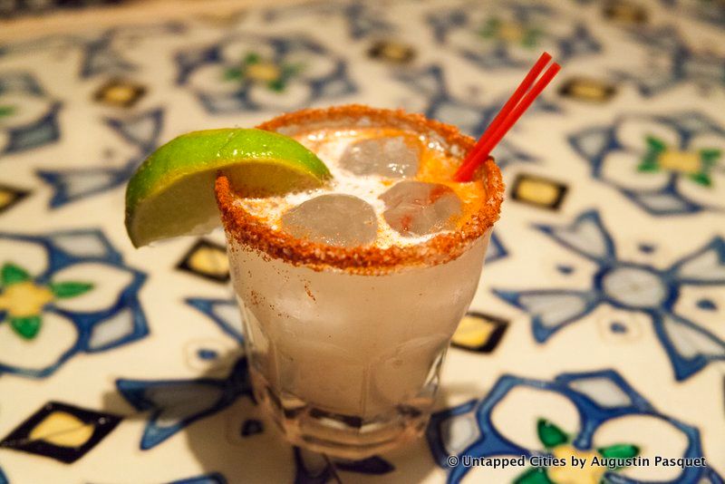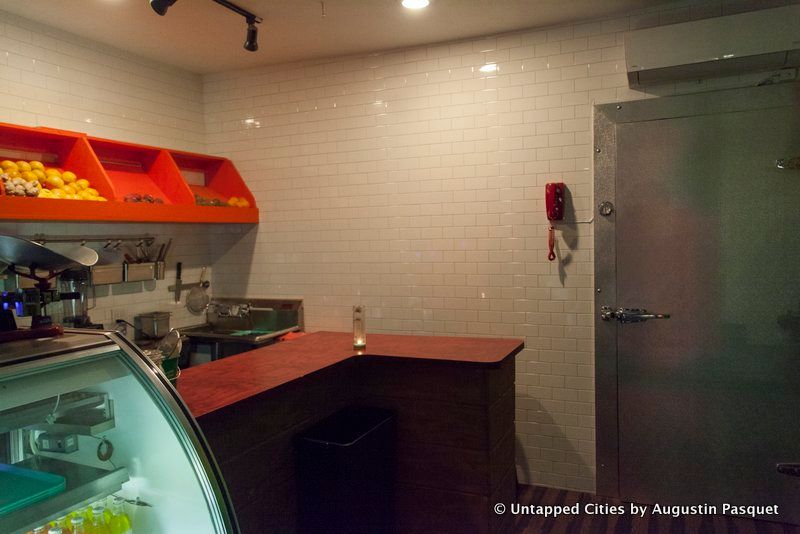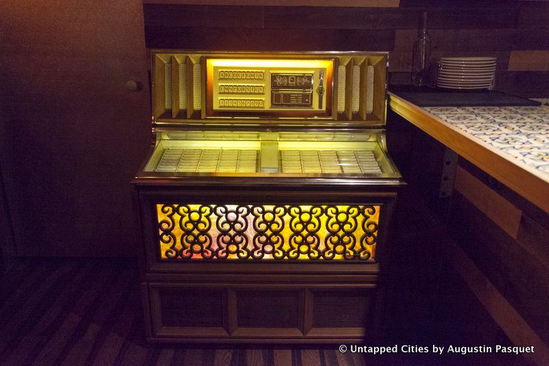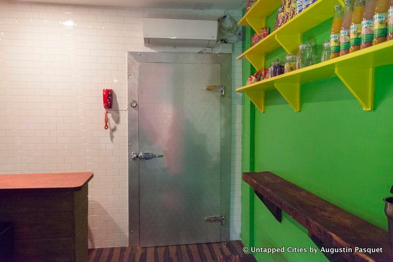 Mendez is also a dedicated DJ who spins every Friday at Lot Radio (the station run out of a shipping container on an the empty lot in Greenpoint) and the design of La Milagrosa reflects that. The top of the line sound system, with McIntosh receiver and Klipsch speakers, is front and center at this bar, along with a DJ booth in the back which would have been a nook for guests in any other bar. Mexican tiles line the long bar and the curved ceiling enhances the acoustic sensibilities of the space. The freezer door is completely soundproof, truly concealing what’s behind.