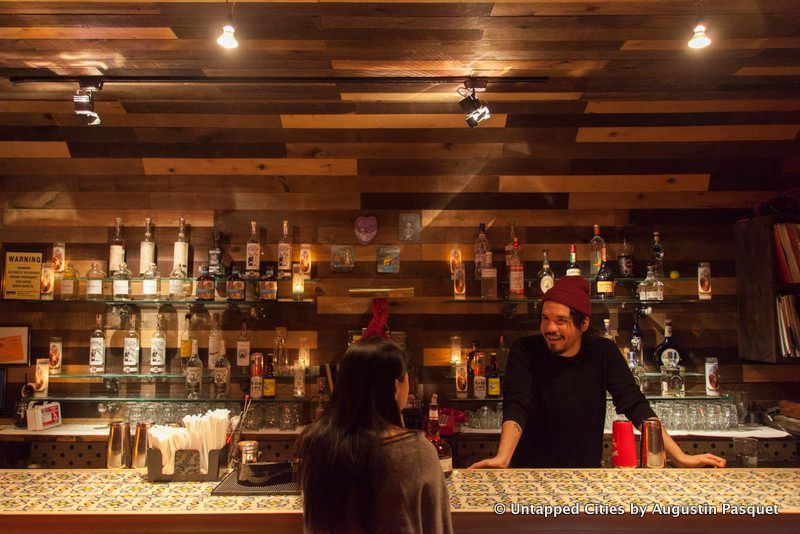 La Milagrosa is essentially an extension of Cerveceria Havemeyer next door, owned by chef and entrepreneur Felipe Mendez, though the two are not connected for the public. After hours, you’ll find a hostess seated next to the freezer door, in front of an old school red phone. It connects to another phone inside, where the bartenders pick up. The phone line is more than just for show, though: La Milagrosa is reservation only – no walk-ins.