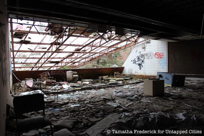 In the 1990s and 2000s, the love resorts of the Poconos were suffering in general. Bookings declined, upkeep costs exceeded revenue, and visitors turned to more modern options. Penn Hills Resort is not alone in its abandonment as most of the other love resorts have either closed down or reinvented themselves. Some— for years— have been slated for demolition. Not all the romance is gone though. You can still live out a tacky fantasy at Cove Haven Resort (the origin of the heart shaped tub), complete with a 7-foot champagne hot tub plopped right in the middle of your suite.