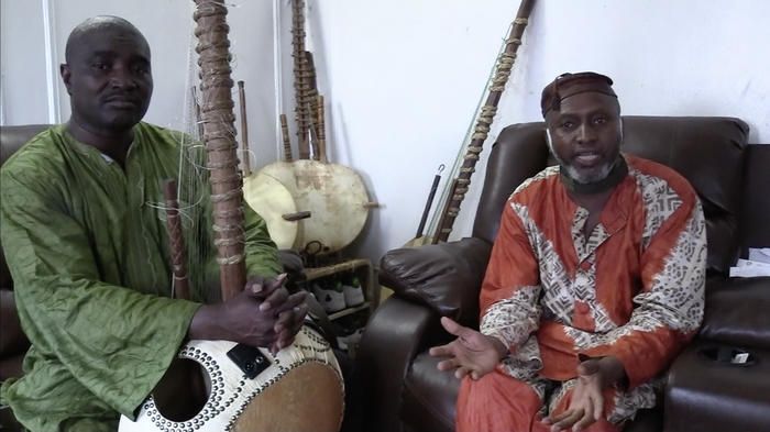 Malang Jobarteh and Salieu Suso convey the contemporary importance of the jali from Malang’s living room in Fordham Heights., Image Courtesy of the Center for Traditional Music and Dance