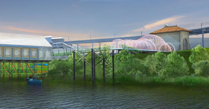 SLO Architecture’s Bronx River Right-of-Way is an adaptive re-use project that will rehabilitate and revitalize the station. Plans for the project show that the building will be relocated to a spot over the Bronx River, adjacent to Concrete Plant Park. This relocation will link the structure to the waterways and waterfronts of Greater New York. You can see animated renderings in this video and learn more about the project directly from the architects working on it in an upcoming virtual talk for Untapped New York Insiders.