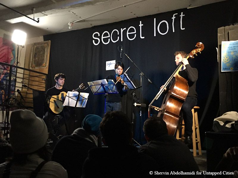 The venue—which ranges from someone’s living room to coffee shops, to even churches—is kept a secret until the day before the event. Checking out the concept, we recently entered a nondescript apartment building in Bushwick, Brooklyn with the exciting anticipation of not knowing too much about what we would encounter since the lineup for the events, which are typically multi-genre and diverse, is not disclosed either.