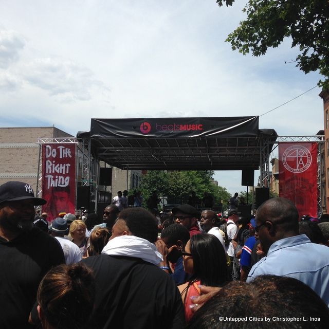 Comedian Dave Chappelle also made an appearance to show his appreciation — quite the rarity for the erratic comedian. Spike Lee was on stage and seen around the neighborhood through the entire event, shaking hands, signing books and taking pictures. Toward the end of the party, we felt like there was something missing — something to make the whole party feel truly feel special. The filling to this hole in the night came from none other than Public Enemy frontman, Chuck D. In a moment that caused many people to cross something off their bucket list, D performed his powerful and most remembered song “Fight The Power” (a song, created specifically for the film as a favor to Spike Lee) making the crowd re-live the iconic music video also filmed in the neighborhood.